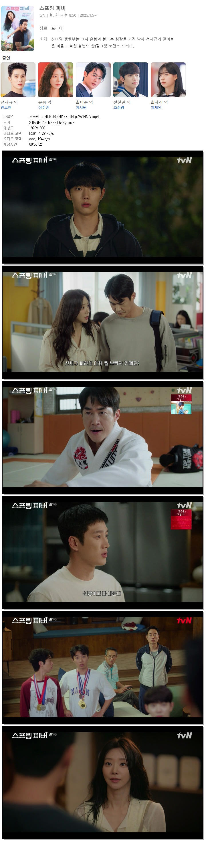 [TVN] 스프링 피버.E08.260127.1080p.WANNA[안보현, 이주빈] 다시보기 토렌트