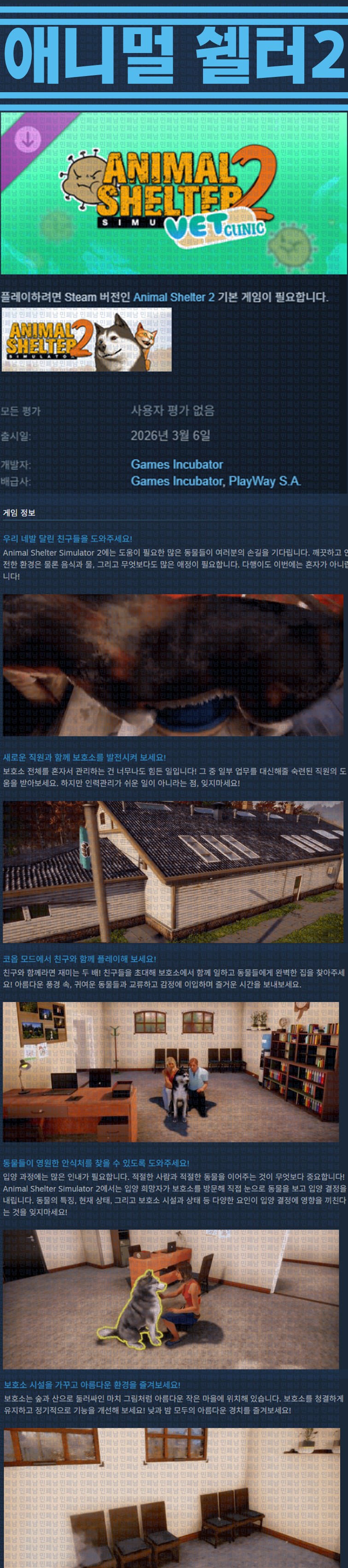 [한글무설치] 애니멀 쉘터 2 v20260306 신규 DLC 다시보기 토렌트