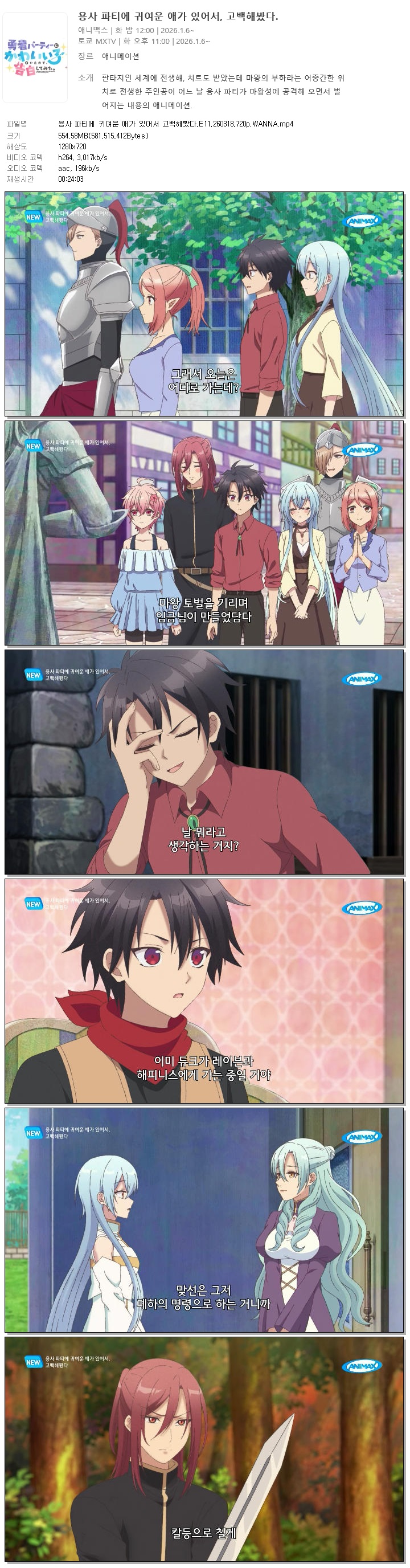 용사 파티에 귀여운 애가 있어서 고백해봤다.E11.260318.720p.WANNA 다시보기 토렌트