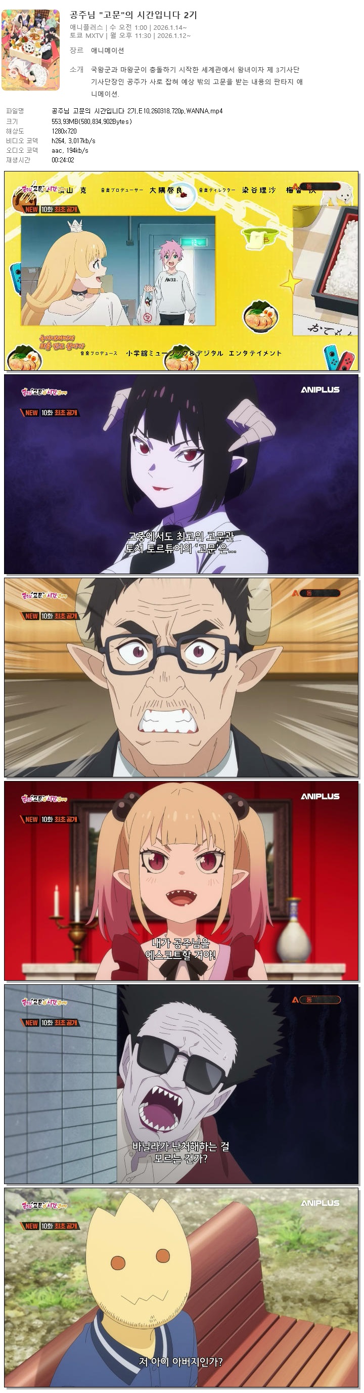 공주님 고문의 시간입니다 2기.E10.260318.720p.WANNA.mp4 553.9 M 00:24:02 1280x720