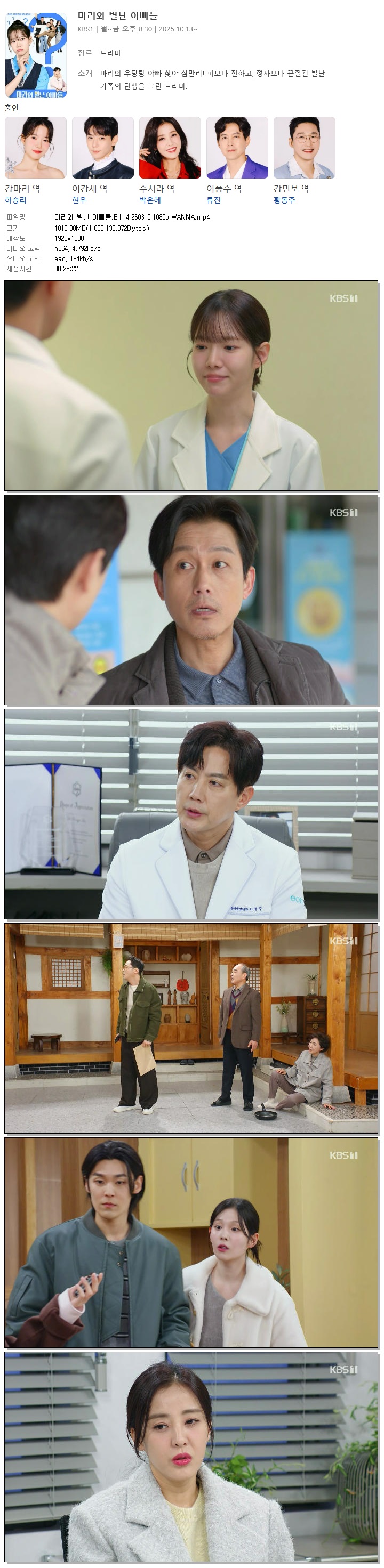 [KBS1] 마리와 별난 아빠들.E114.260319.1080p.WANNA[하승리, 현우] 다시보기 토렌트
