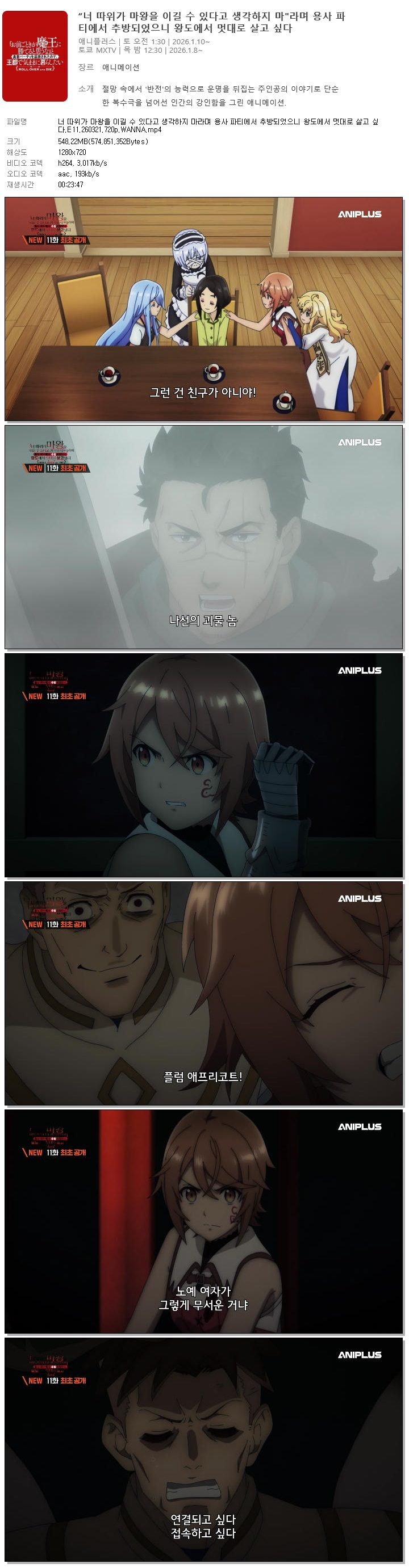 너 따위가 마왕을 이길 수 있다고 생각하지 마라며 용사 파티에서 추방되었으니 왕도에서 멋대로 살고 싶다.E11.260321.720p.WANNA 다시보기 토렌트