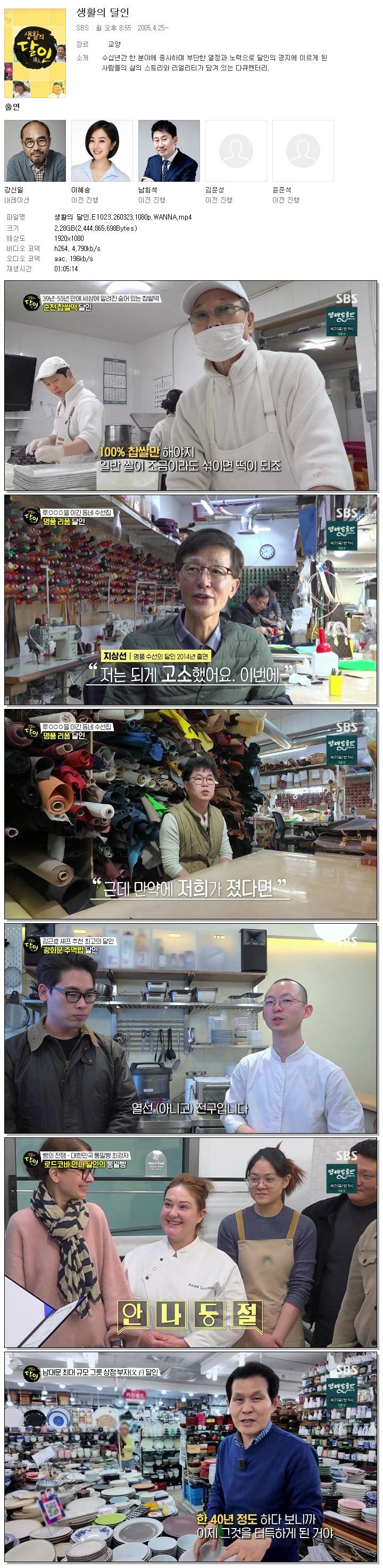 | [SBS] 생활의 달인.E1023.260323.1080p.WANNA.mp4 | 2.3 G | 01:05:14 | 1920x1080 |