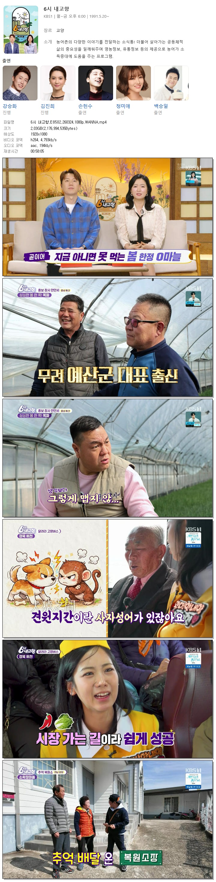 | [KBS1] 6시 내고향.E8502.260324.1080p.WANNA[강승화, 김진희].mp4 | 2 G | 00:58:05 | 1920x1080 |