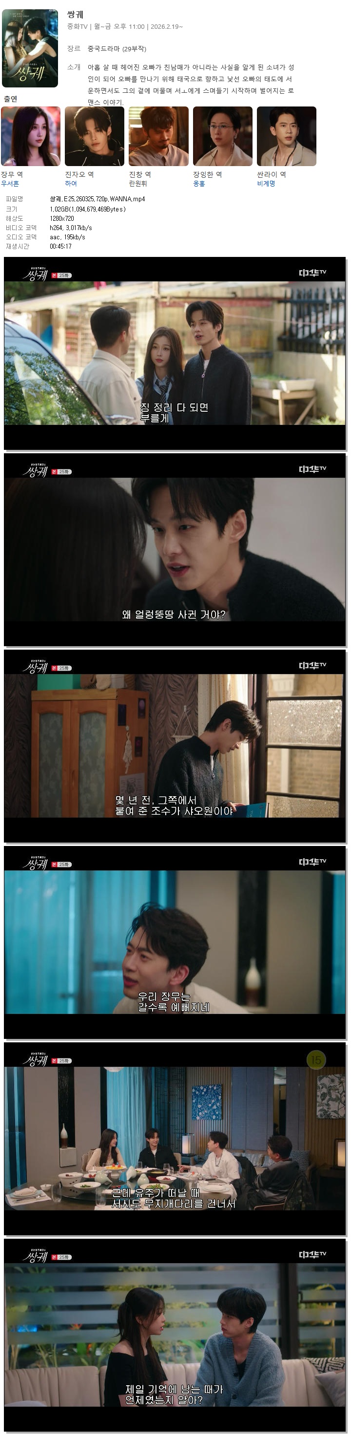 [중화TV] 쌍궤.E25.260325.720p.WANNA[우서흔, 하여] 다시보기 토렌트
