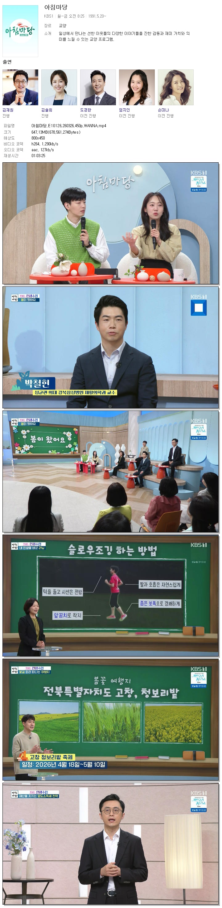 | [KBS1] 아침마당.E10126.260326.450p.WANNA[엄지인, 박철규].mp4 | 647.1 M | 01:03:25 | 800x450 |