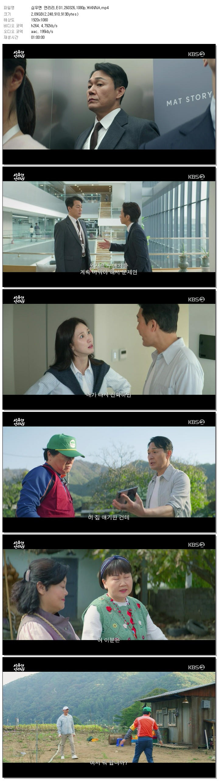 [KBS2] 심우면 연리리.E01.260326.1080p.WANNA[박성웅, 이수경].mp4 2.1 G 01:00:00 1920x1080