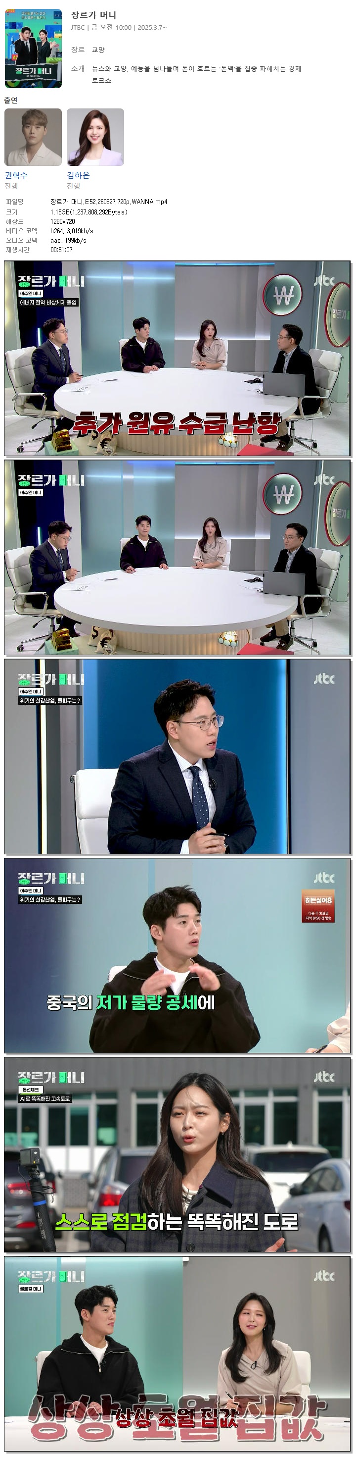 | [JTBC] 장르가 머니.E52.260327.720p.WANNA[권혁수, 김하은].mp4 | 1.2 G | 00:51:07 | 1280x720 |