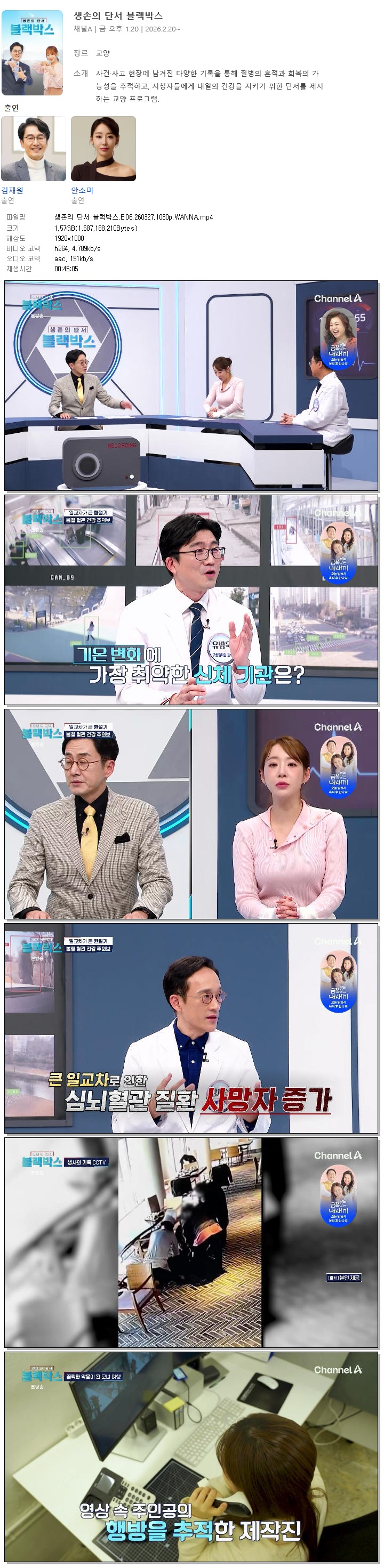 [채널A] 생존의 단서 블랙박스.E06.260327.1080p.WANNA[김재원, 안소미].mp4 1.6 G 00:45:05 1920x1080