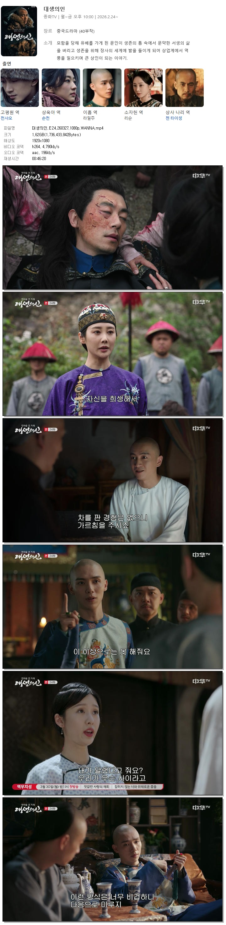 [중화TV] 대생의인.E24.260327.1080p.WANNA[천샤오, 손천] 다시보기 토렌트