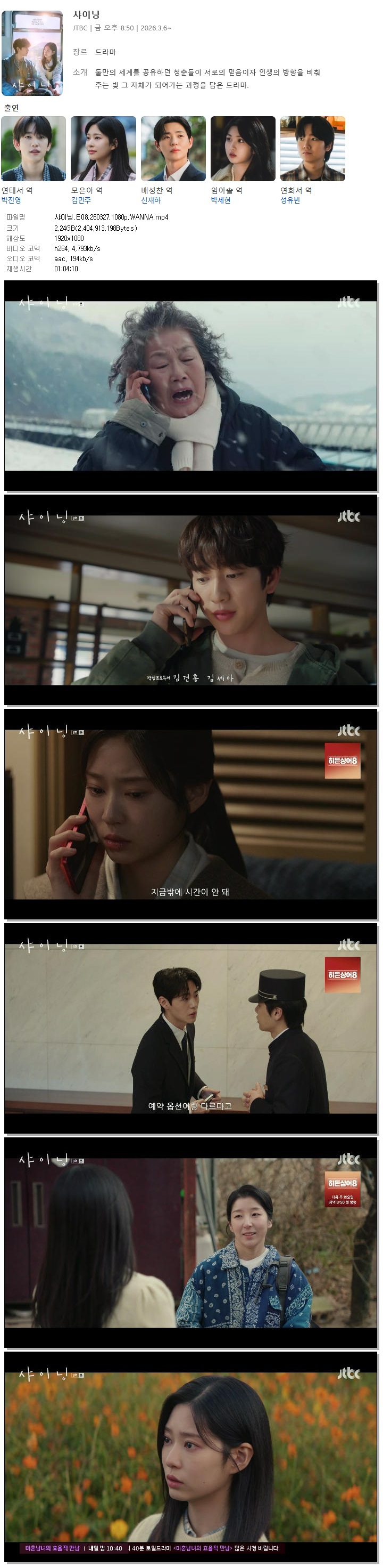 | [JTBC] 샤이닝.E08.260327.1080p.WANNA[박진영, 김민주].mp4 | 2.2 G | 01:04:10 | 1920x1080 |