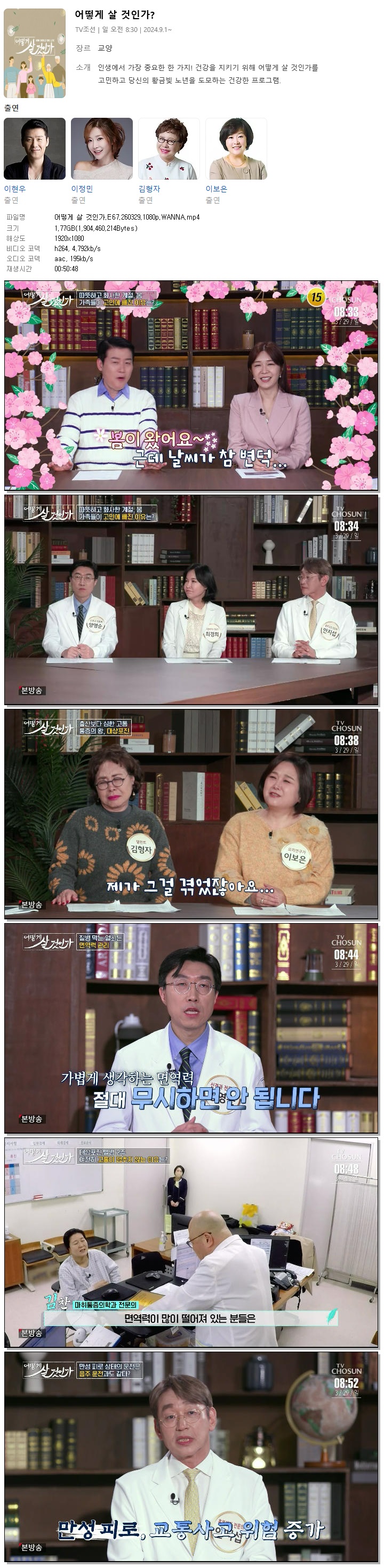 | [TV조선] 어떻게 살 것인가.E67.260329.1080p.WANNA[이현우, 이정민].mp4 | 1.8 G | 00:50:48 | 1920x1080 |