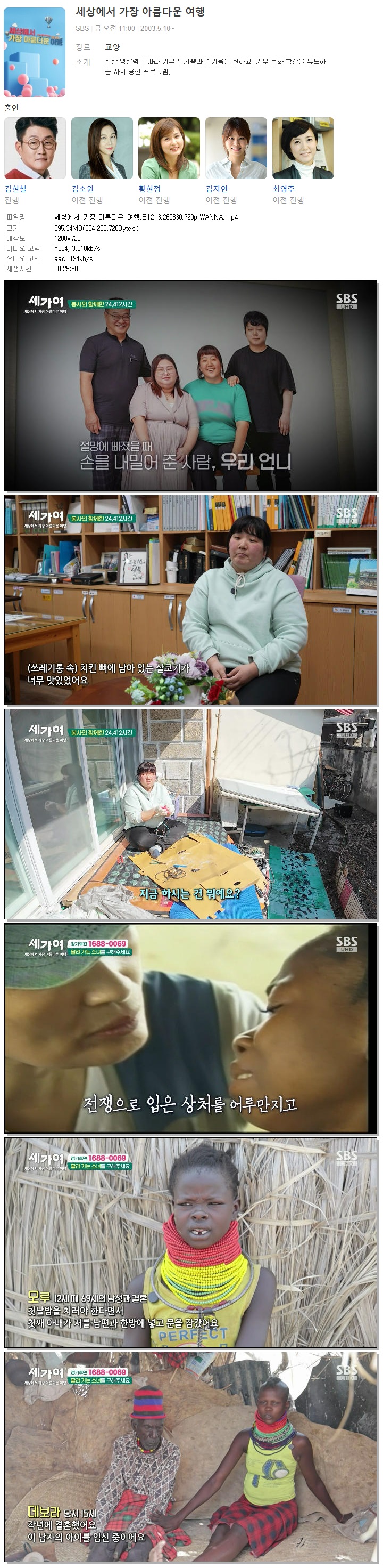| [SBS] 세상에서 가장 아름다운 여행.E1213.260330.720p.WANNA[최영주].mp4 | 595.3 M | 00:25:50 | 1280x720 |