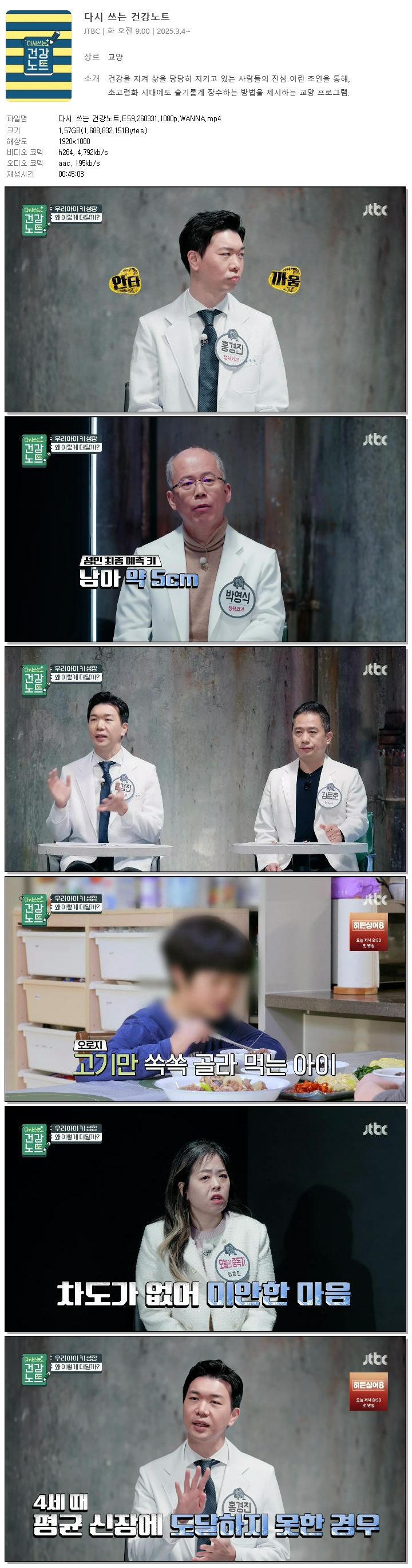 [JTBC] 다시 쓰는 건강노트.E59.260331.1080p.WANNA.mp4 1.6 G 00:45:03 1920x1080