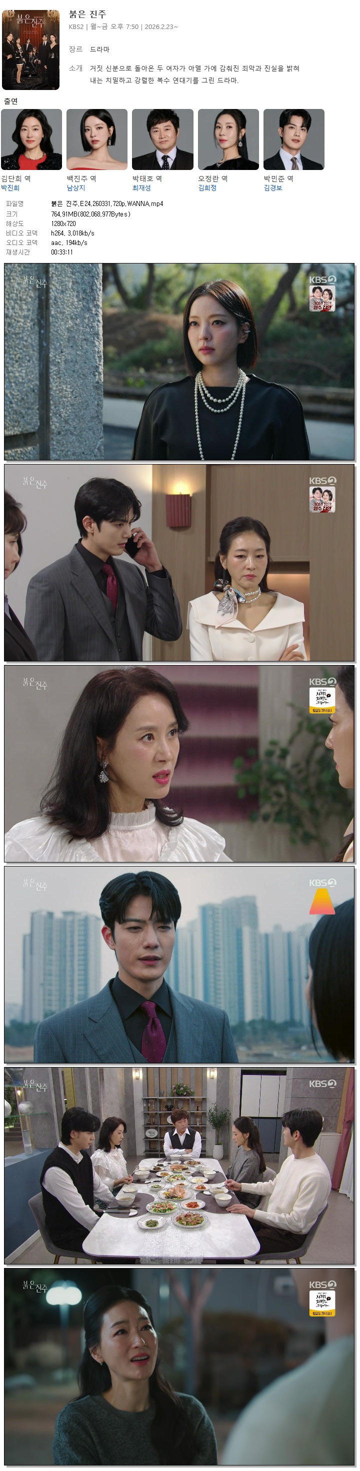 [KBS2] 붉은 진주.E24.260331.720p.WANNA[박진희, 남상지] 다시보기 토렌트
