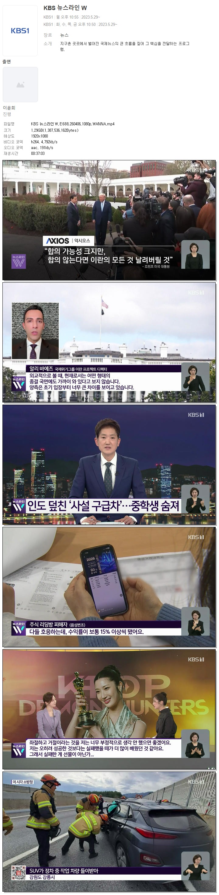 | [KBS1] KBS 뉴스라인W.E688.260406.1080p.WANNA.mp4 | 1.3 G | 00:37:03 | 1920x1080 |