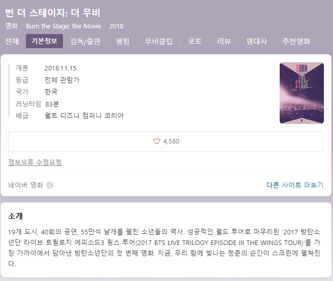 | (BTS 번 더 스테이지 더 무비)_1.mkv | 3.2 G | 01:20:00 | 1280x720 |