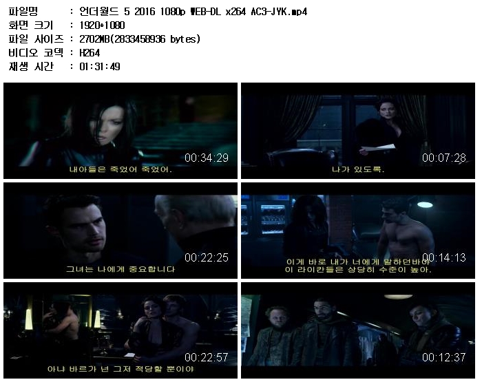 | 언더월드 5 2016 1080p WEB-DL x264 AC3-JYK.mp4 | 2.6 G | - | 1920x1080 |