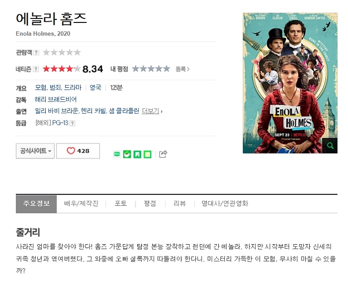 [ 에 놀 라 홈 즈 ] 한글자막 초고화질