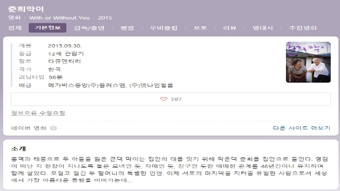 (춘희막이) 2015_1.mp4 | 2.3 G | 01:36:00 | 1280x720 |