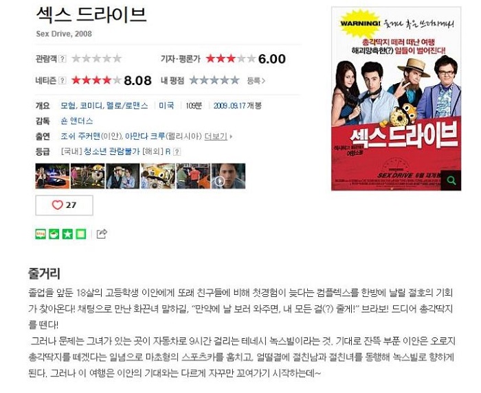 | [코미디][ 섹스드라이버 ] ALL노출 무등급 한글자막_01.mkv | 2.2 G | - | 1280x694 |