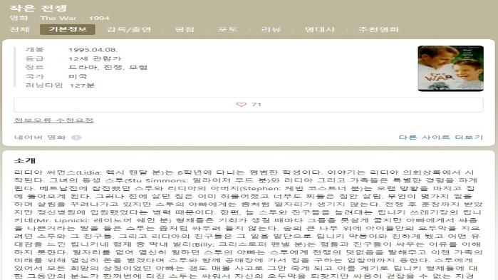 (작은 전쟁) 1994 한글자막_1.mkv | 4.4 G | 02:05:11 | 213x120 |