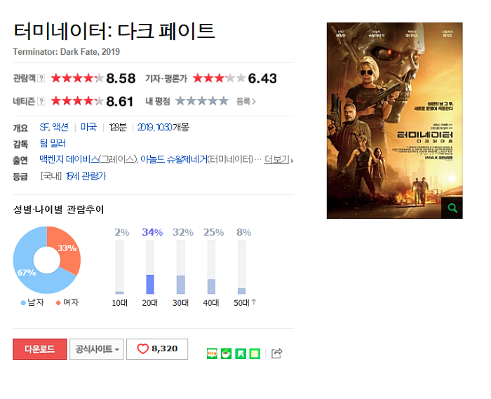 (무삭제 터미네이터 다크페이트) 자체자막_1.mkv | 3.8 G | 02:08:06 | 1920x1080 |
