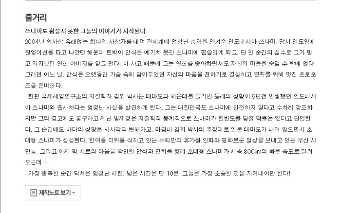 | [한국][ 해운대 ] 쓰나미가 몰려온다_01.mp4 | 2.3 G | - | 1920x816 |