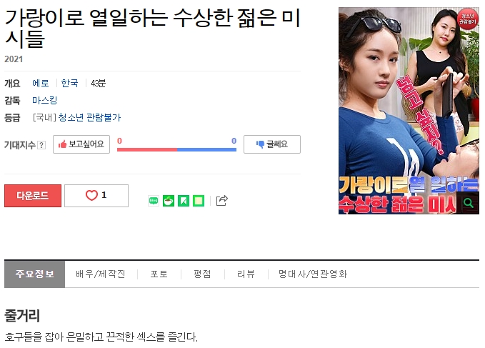 본 정보내용은 청소년유해매체물로서 정보통신망이용촉진 및 정보보호 등에 관한 법률 및 청소년보호법의 규정에 의하여 만 19세 미만의 청소년이 이용할 수 없습니다. 아동·청소년 음란물(야동,포르노)을 제작·배포·소지한 자는 형사 처벌을 받을 수 있습니다.
