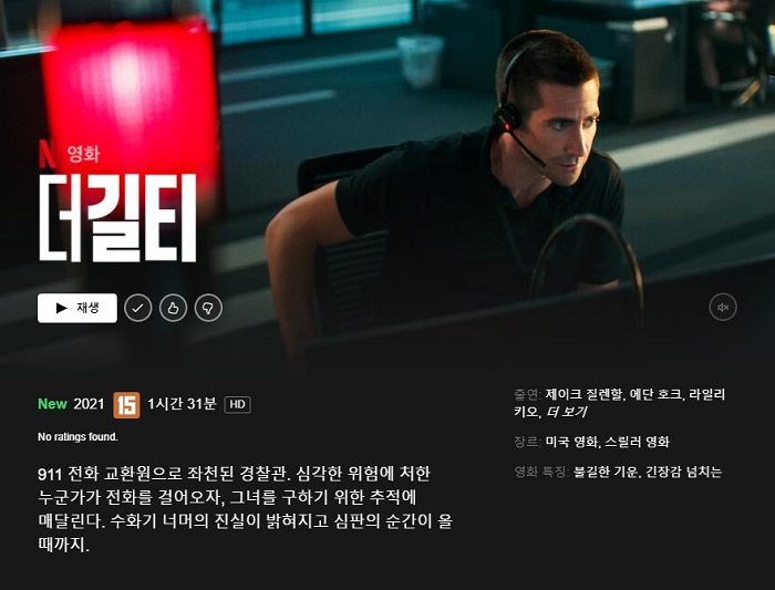 ico[더 길티] 간만에 잘 만든 리메이크 제이크 질런홀, 라일리 키오, 폴 다노, 에단 호크.. 안톤 후쿠아 감독/