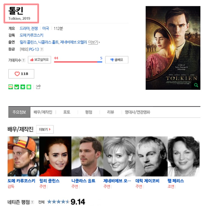 ico인물 영화 반지의 제왕의 거장 [ 톨 킨 ]한글자막/