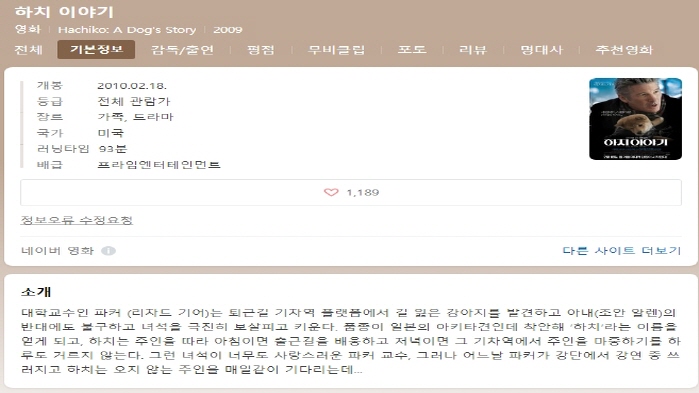 (하치 이야기) 2010_1.mkv | 4.4 G | 01:33:00 | 1280x690 |