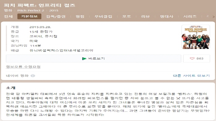 (언프리티 걸즈 피치 퍼펙트 2) 2015 한글자막_1.mkv | 2.9 G | 01:54:00 | 1920x1040 |