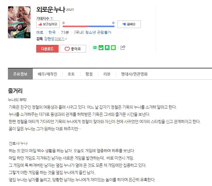 본 정보내용은 청소년유해매체물로서 정보통신망이용촉진 및 정보보호 등에 관한 법률 및 청소년보호법의 규정에 의하여 만 19세 미만의 청소년이 이용할 수 없습니다. 아동·청소년 음란물(야동,포르노)을 제작·배포·소지한 자는 형사 처벌을 받을 수 있습니다.