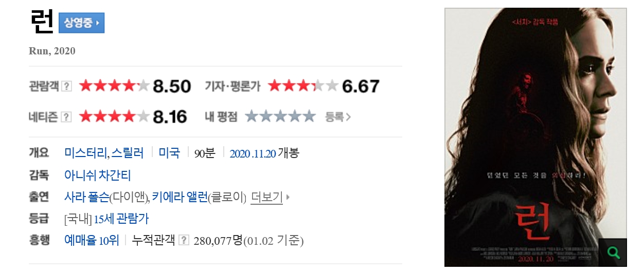 | Run.2020.2160p.HULU.WEB-DL.DDP5.1.HEVC-CMRG.mkv | 9.7 G | 01:29:26 | 3840x2160 |