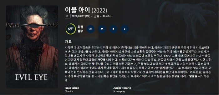 | 【최신 영화 영상은 친추】이블 아이 Evil.Eye.2022.KOR.H264-REEL-1080P.mkv | 3.3 G | 01:39:00 | 1920x1080 |