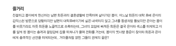 본 정보내용은 청소년유해매체물로서 정보통신망이용촉진 및 정보보호 등에 관한 법률 및 청소년보호법의 규정에 의하여 만 19세 미만의 청소년이 이용할 수 없습니다. 아동·청소년 음란물(야동,포르노)을 제작·배포·소지한 자는 형사 처벌을 받을 수 있습니다.