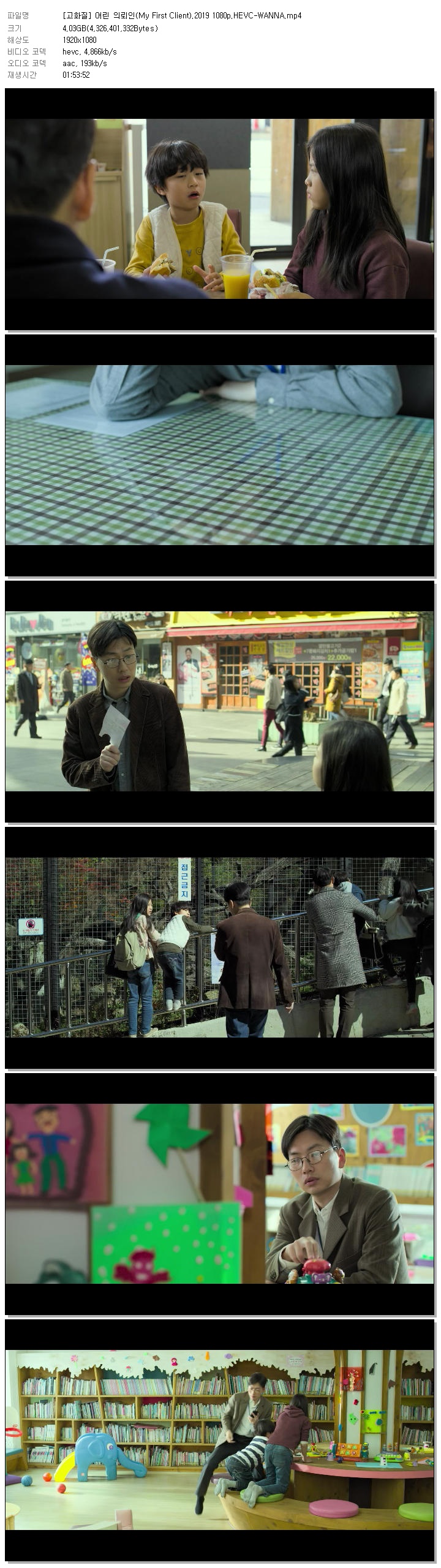 | [고화질] 어린 의뢰인(My First Client).2019 1080p.HEVC-WANNA.mp4 | 4 G | 01:53:52 | 1920x1080 |