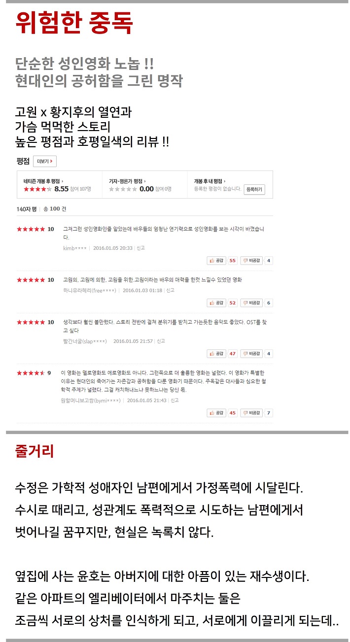 | 1080p 고원 올노1 남의 여자를 탐하다 [위험한 중독 무샥제판] 예술작.mp4 | 2.2 G | 01:38:50 | 1920x1080 |