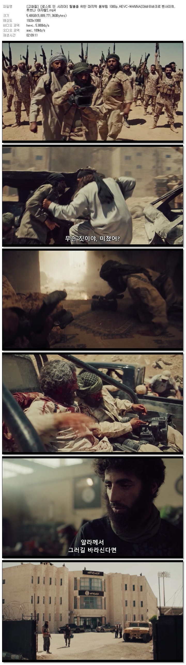 | [고화질] [로스트 인 시리아] 탈출을 위한 마지막 몸부림 1080p.HEVC-WANNA[아바우바크르 벤사이히, 루브나 아자발].mp4 | 5.5 G | 02:09:11 | 1920x1080 |