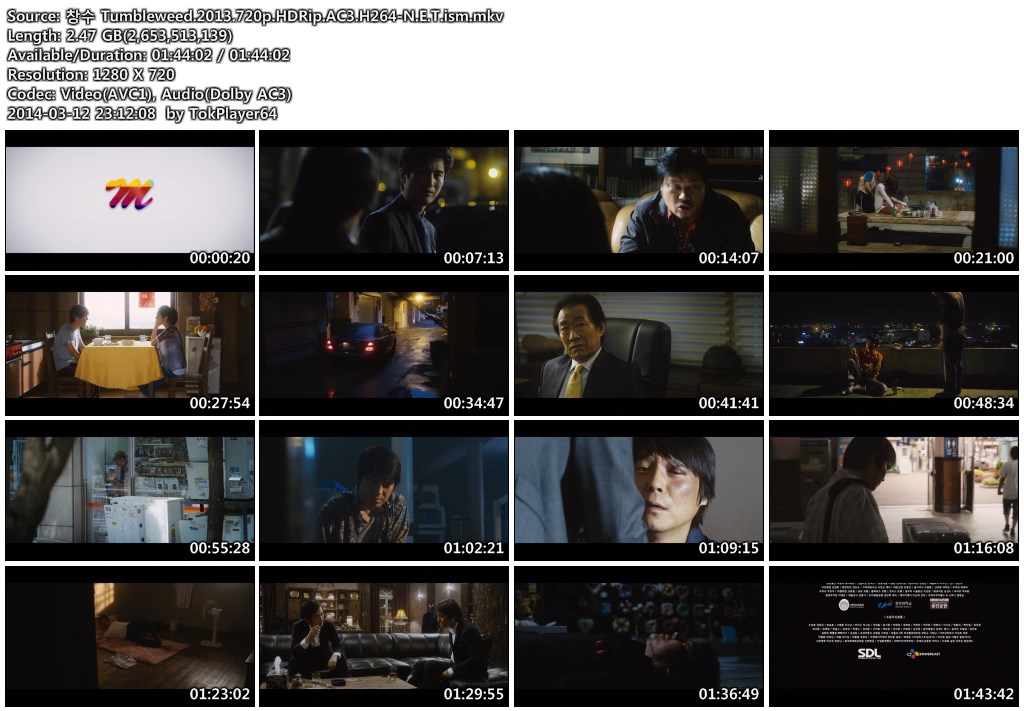 | 창수 Tumbleweed.2013.720p.HDRip.AC3.H264-N.E.T.ism.mkv | 2.5 G | 01:44:02 | 1280x720 |