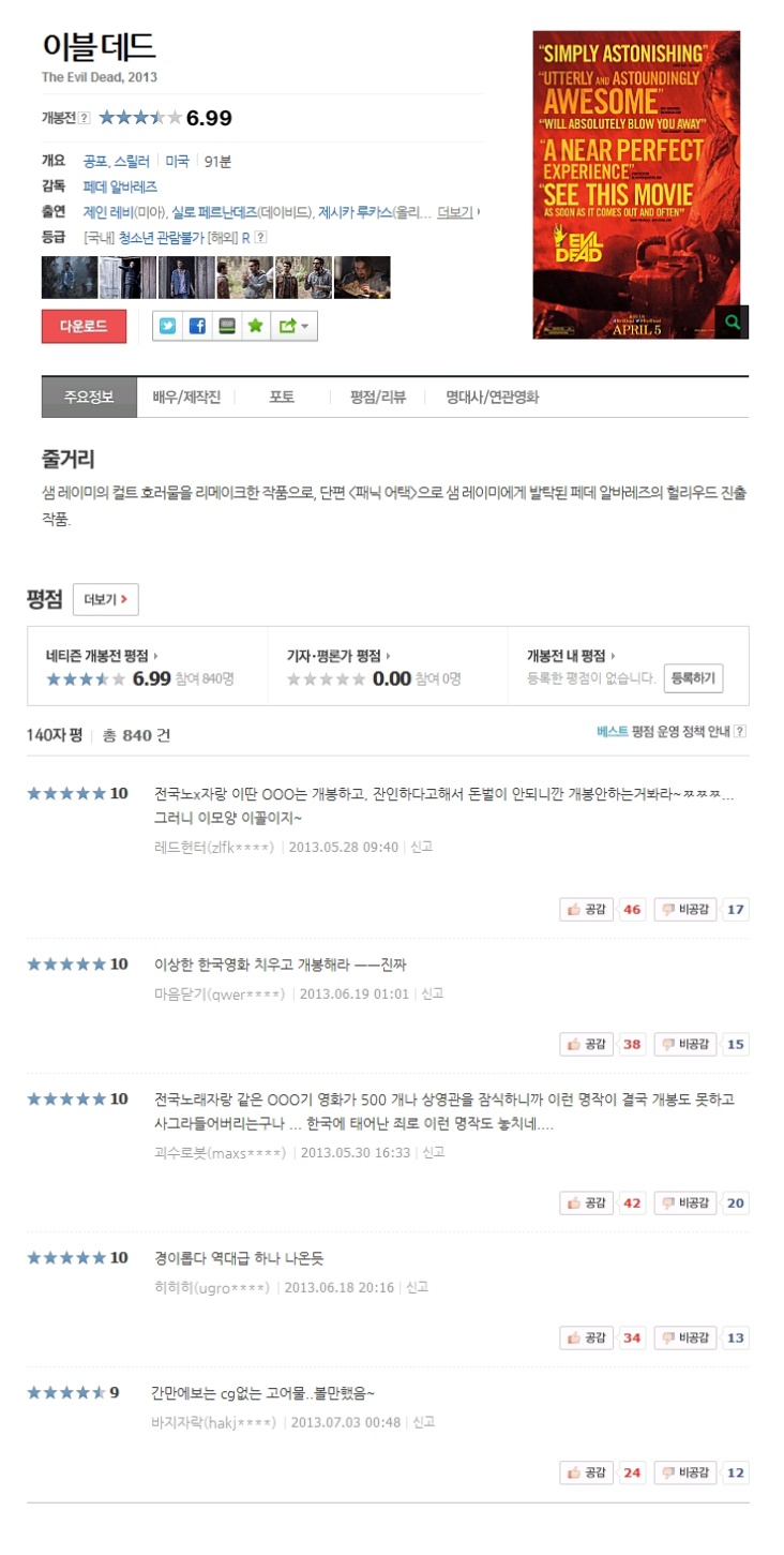 | Evil.Dead.2013.720p.BluRay.DTS.x264-PublicHD-KS2D.mkv | 5.2 G | 01:31:00 | 1280x720 |