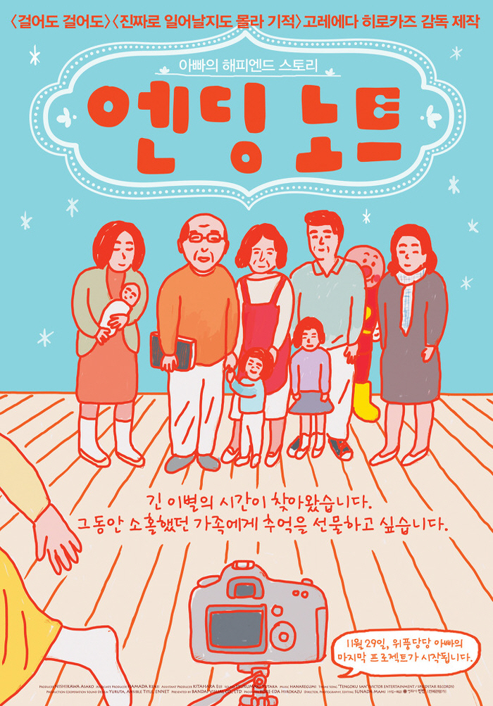 스나다 도모아키는 건강검진을 통해 말기암 판정을 받게 된다. 하지만 예상치 못한 죽음 앞에 망연자실 슬퍼하기보다 성실하고 꼼꼼하게 자신만의 ‘엔딩노트’를 준비하는 아빠. ‘평생 믿지 않았던 신을 믿어보기’, ‘한번도 찍어보지 않았던 야당에 표 한 번 주기’, ‘일만 하느라 소홀했던 가족들과 여행가기’ 등 위트 있고 솔직한 마음을 담은 리스트를 작성하며 아빠는 가족들과 소중한 추억을 쌓는다. 그렇게 ‘엔딩노트’가 채워질수록 가족들과의 긴 이별의 시간은 점점 가까워지는데