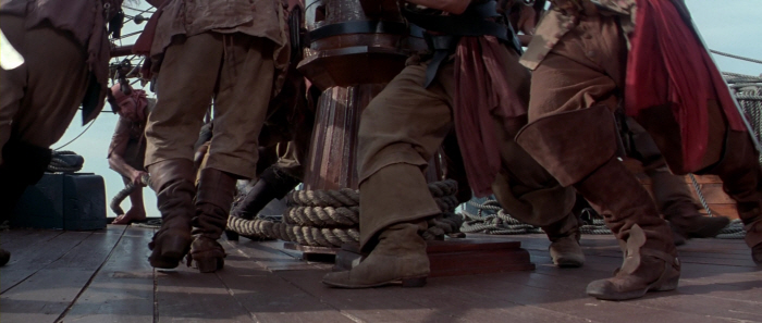 핸섬한 사기꾼 쇼는 아버지에 대한 복수와 보물을 찾겠다는 욕망 로 바다와 자신의 선원들을 지키는 모건의 용기와 매력에 빠져 자신도 모르는 사이에 그녀의 포로가 된다. 모건과 함께 컷스로트 아일랜드를 찾아가는 험난한 여정에 동행한 쇼는 보물섬을 찾는 결정적인 단서가 될 또 의 지도를 훔쳐낸다. 전체 세 장으로 나뉘어 있는 보물 지도중 두 조각을 입수한 모닝스타호는 컷스로트 아일랜드를 향해 거침없이 노를 젓는다. 그러나 여선장 모건을 시기하던 스컬티(Scully: 지미 F. 스카그스 분)는 선상 반란을 일으키고 모닝 스타호는 또한차례 죽음의 곡예를 넘는다