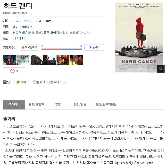 | Hard Candy.2005.BD.Remux.1080p.h264.Rus.Eng.2xCommentary.mkv | 18.4 G | 01:44:07 | 1920x1080 |