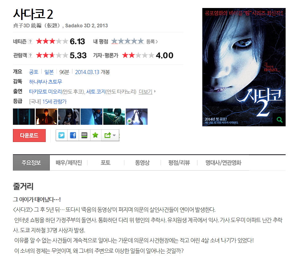 [사다코 3D 2] 2014 최신공포상영중 [사다코2 ] 5년뒤그아이가 깨어났다!!