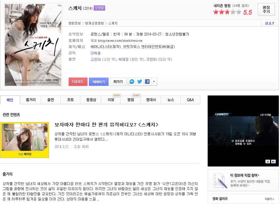 | 스케치-2014.720p.HDRip.XviD.avi | 2.1 G | 01:34:00 | 1280x720 |