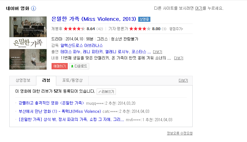 | Miss.Violence.2013.720p.KOR.HDRip.H264-LKPiC.mp4 | 2.2 G | 01:39:00 | 1280x720 |