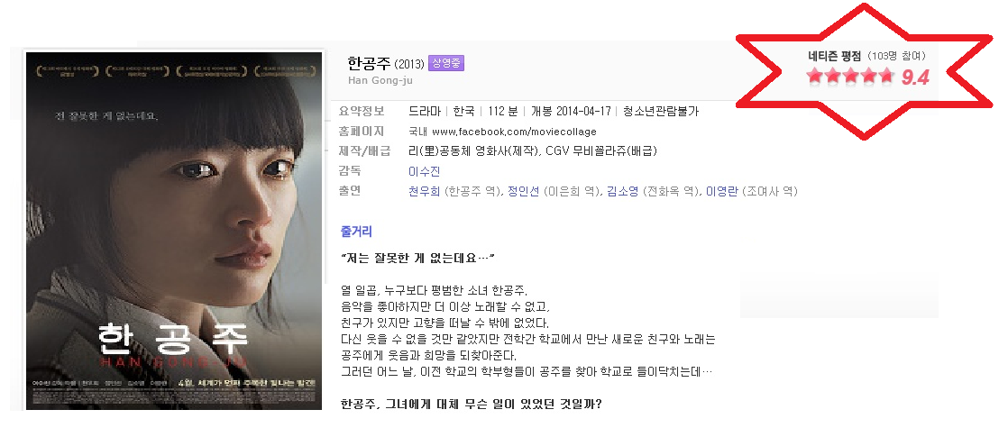 | 한공주.2013Han.Gong-ju.HDRip.720p.H264.천우희.정인선-WAF.avi | 2.8 G | - | 1280x720 |