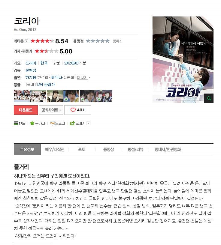 코리아 (As one, 2012).mkv 2.7 G 02:06:00 1340X720